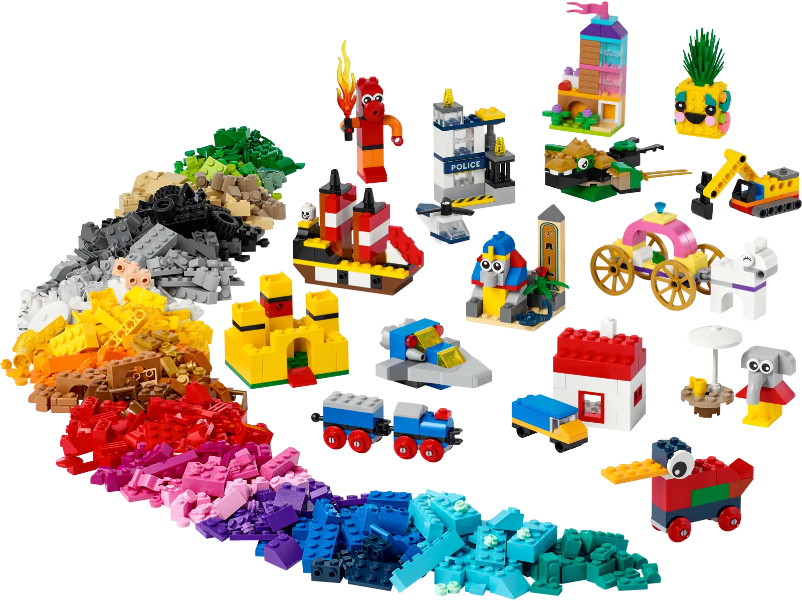 Utilizza 15 piccole riproduzioni di giocattoli LEGO, oltre a mattoncini extra per la costruzione libera!