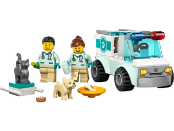 - Il set include tutto il necessario per creare un veicolo giocattolo per soccorrere gli animali, con minifigure di veterinario, cane e gatto, oltre a accessori divertenti come una siringa giocattolo, un biberon, una ciotola per il cane e un osso.