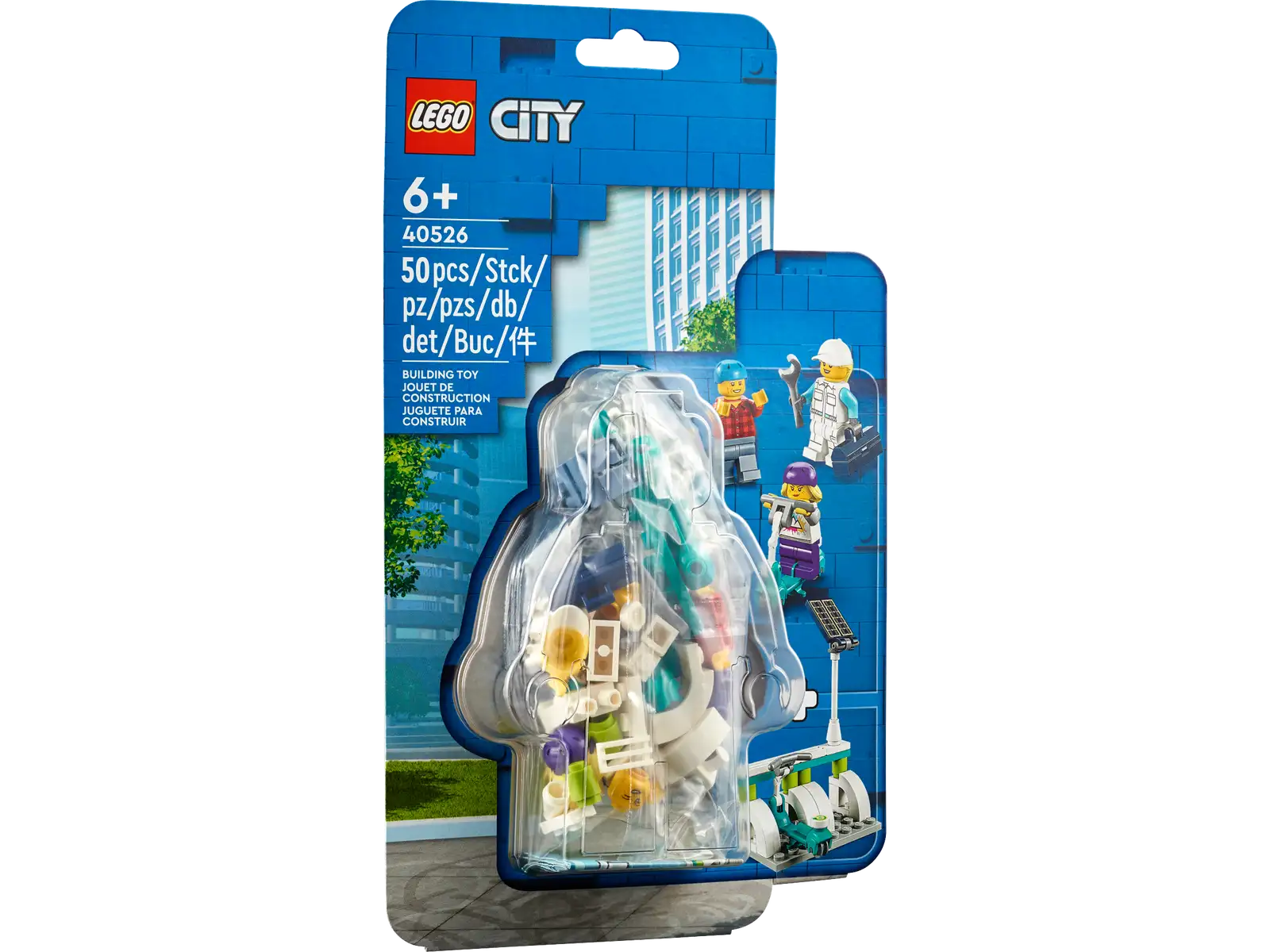 Il set LEGO Scooter elettrici e stazione di ricarica 40526 include minifigure rappresentative di cittadini impegnati nella sostenibilità urbana. Con accessori come caschi, strumenti e dispositivi di ricarica, le minifigure danno vita alla scena, aggiungendo un tocco di realismo e connessione con il mondo reale.