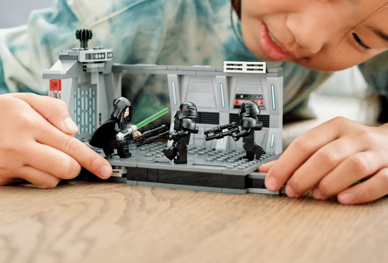 Il set LEGO Star Wars 75324 riproduce in dettaglio la scena all’interno dell’Incrociatore Imperiale dove ricompare Luke Skywalker insieme alla sua spada laser LEGO, tratta da The Mandalorian Stagione 2.