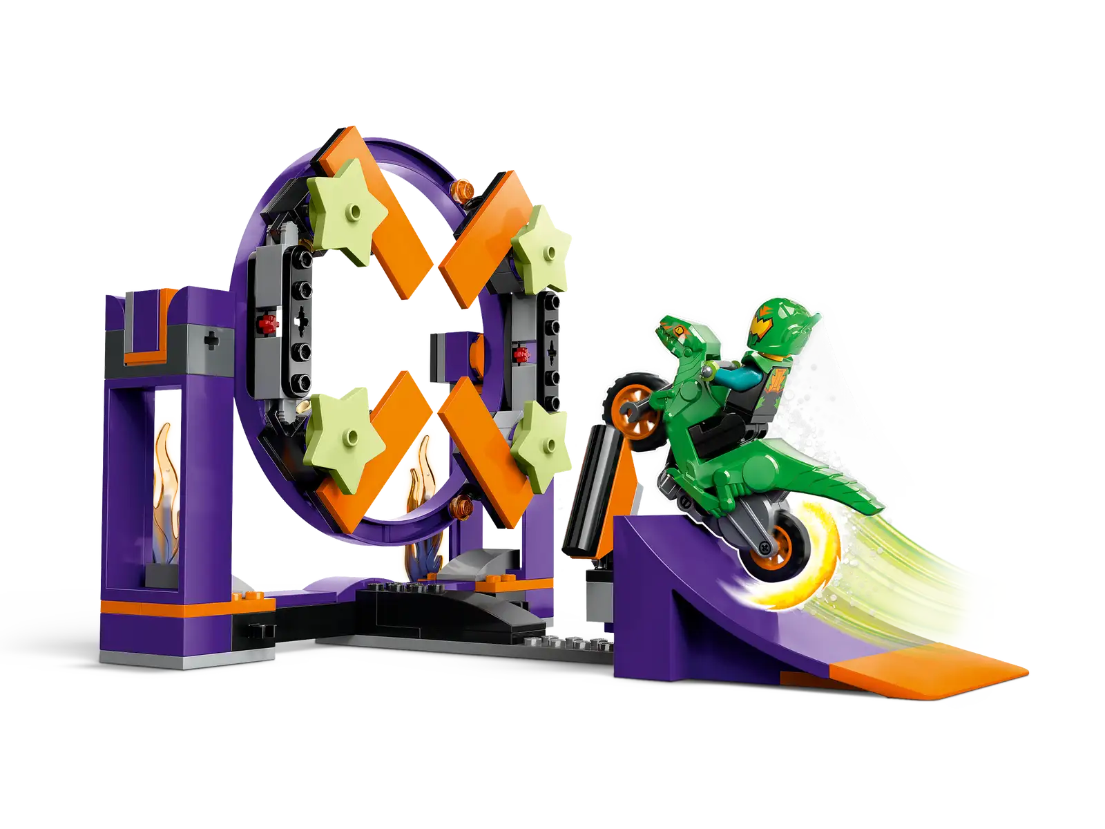 Il set Sfida acrobatica: schiacciata sulla rampa LEGO 60359 include dettagliati modelli di veicoli acrobatici completamente personalizzabili.